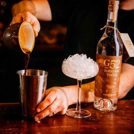 The G52 botanical coffee vodka is known for its rich infused flavours of vodka and roasted coffee. It is dark amber in colour and offers smooth and velvety notes of espresso, cocoa and hints of vanilla. This blend is perfect for both coffee lovers and vodka lovers to indulge in the combination of both. On the nose, the aroma is quite inviting with notes of beep coffee and chocolate undertones. This drink is ideal for cocktails or to simply sip over ice!