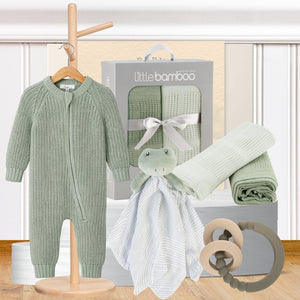 Keep baby warm, cosy, and comforted through the cooler months with this beautifully curated Winter Baby Gift Hamper. Featuring soft knitted essentials, breathable bamboo blankets, and soothing accessories, this hamper is designed for comfort, warmth, and everyday ease. With calming sage tones and cuddly companions, it’s the perfect gift for newborns, baby showers, or winter arrivals.