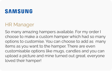 With Hampers Galore, you can personalise all your gifts to reflect your brand identity, making your gifting a powerful extension ofyour business branding.