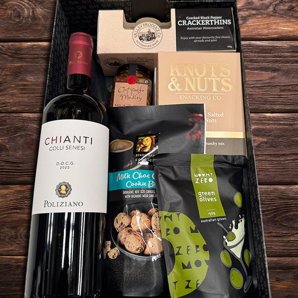 We have a range of Australian snacks such as chocolate milk cookies, crackers, salted nuts, antipasto medley and green olives. You can always browse through our long list of snack options and choose to customize the hamper to match your preferences.